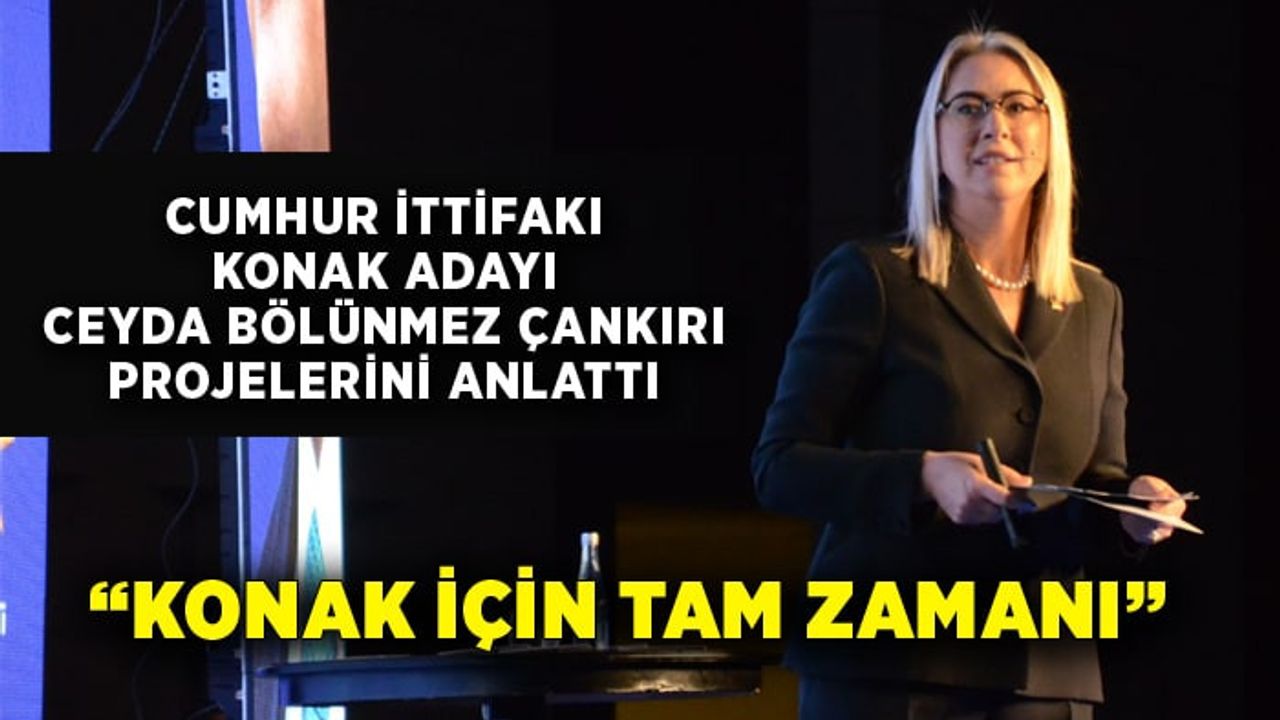 Cumhur İttifakı Konak Belediye Başkan Adayı Ceyda Bölünmez Çankırı'nın projelerini anlattığı toplantıya AK Parti İzmir Büyükşehir Belediye Başkan Adayı Hamza Dağ, AK Parti İzmir Milletvekili Şebnem Bursalı ve Eyyüp Kadir İnan, AK Parti İl Başkanı Bilal Saygılı, MHP İl Başkanı Veysel Şahin, İESOB Başkanı Yalçın Ata, ilçe başkanları, belediye meclis üyeleri, STK ve dernek temsilcileri katıldı.