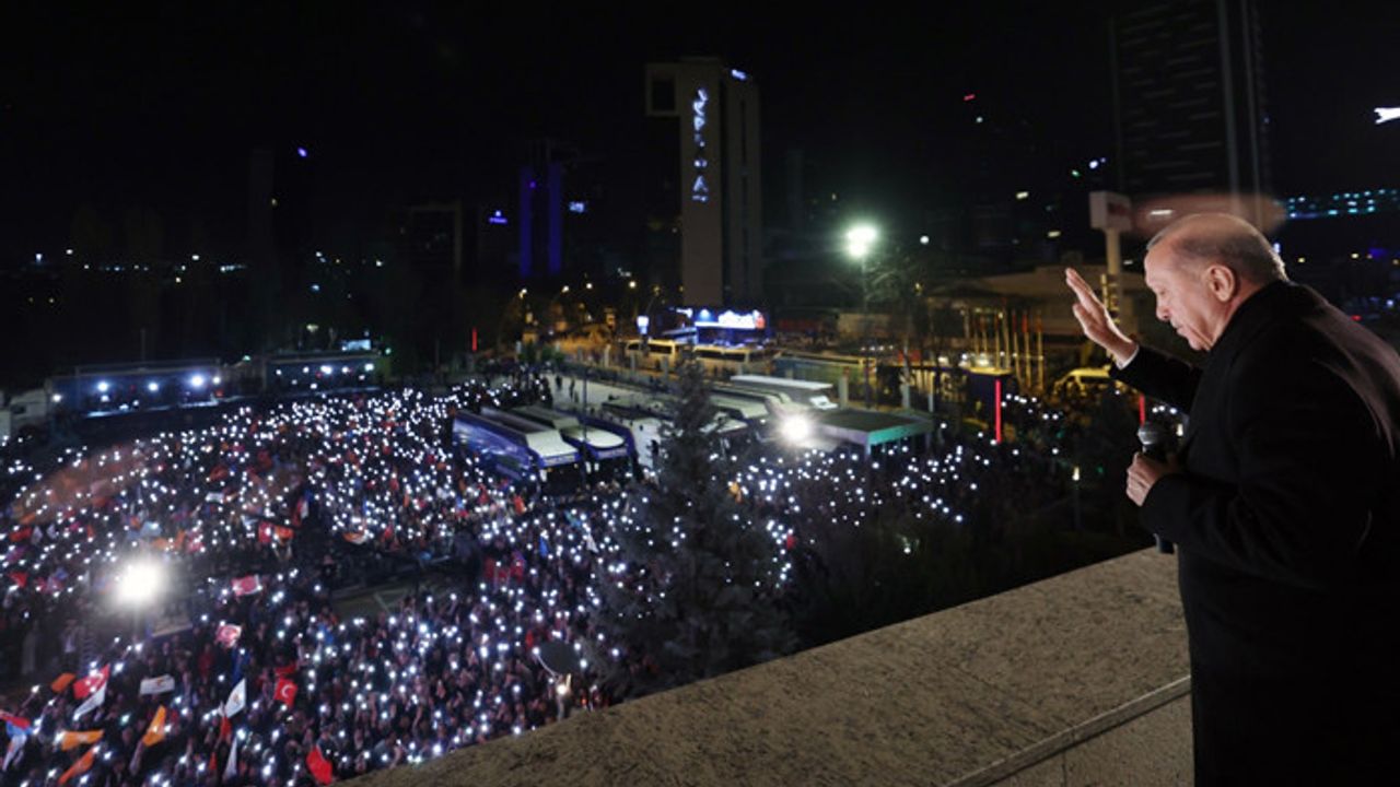 Erdoğan, seçim maratonunda kazananın adaylardan önce Türkiye olduğuna vurgu yaparak, "Kazanan, milletimiz olmuştur. Uğruna ağır bedeller ödediğimiz demokrasimiz olmuştur. Bugün AK Parti'ye ve Cumhur İttifakına oy verenlerle birlikte demokratik haklarını kullanarak sandığın gücüne güç katan herkes kazanmıştır. Kim ne derse desin buradan siyasi parti fark etmeksizin iradesini serbestçe sandığa yansıtan tüm vatandaşlarıma içtenlikle teşekkür ediyorum. Yüksek sorumluluk bilinciyle mesai harcayan sandık kurullarımıza, seçim görevlilerimize, emniyet mensuplarımıza da samimi teşekkürlerimi iletiyorum. Gecenin bu saatinde sandık kurullarında görevlerini yaparak buraya gelen siz değerli kardeşlerime ayrıca şükranlarımı ifade ediyorum. Seçim sonuçlarının ülkemize, milletimize, şehirlerimize, mahallerimize ve köylerimize hayırlı olmasını diliyorum" diye konuştu.