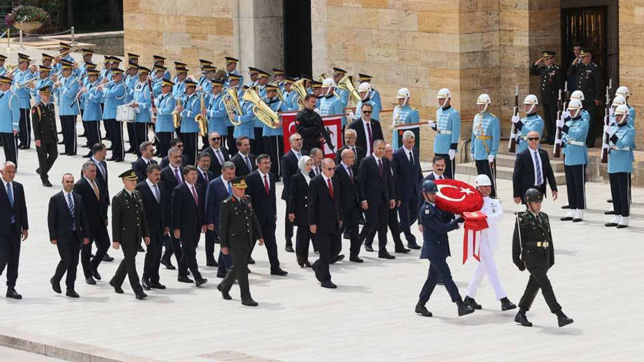 Cumhurbaşkanlığı Hükumet Sistemi'nin 2'nci döneminin ilk kabine toplantısı öncesi Cumhurbaşkanı Erdoğan, kabineye atanan yeni bakanlardan oluşan heyetle Anıtkabir'i ziyaret etti. Cumhurbaşkanı Erdoğan başkanlığındaki heyet, Aslanlı Yol’dan yürüyerek Atatürk’ün mozolesine çıktı. Erdoğan, karanfillerle süslü Türk bayrağı çelengini Atatürk'ün mozolesine bıraktı. 1 dakikalık saygı duruşunun ardından İstiklal Marşı okundu. Erdoğan, daha sonra heyet ile birlikte Misak-ı Milli Kulesi’ne geçerek, Anıtkabir Özel Defterini imzaladı. Erdoğan, deftere şunları yazdı;