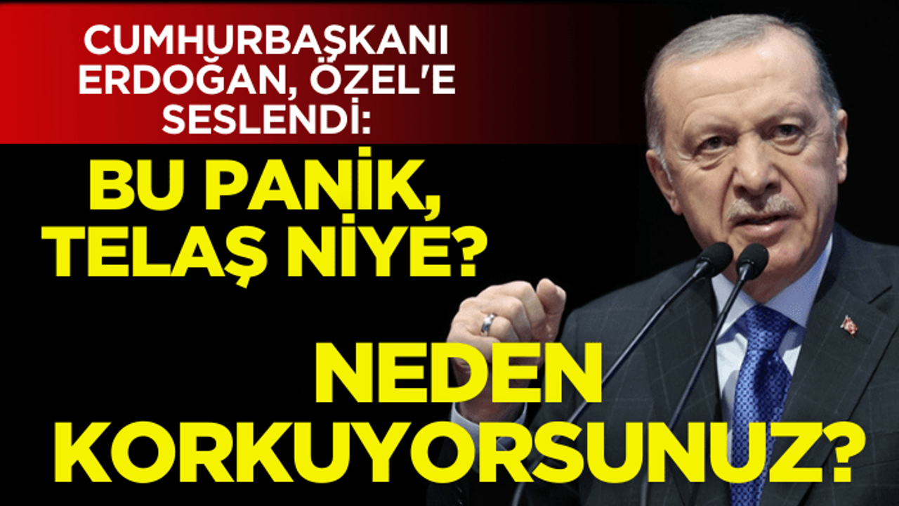 Cumhurbaşkanı Erdoğan "Belediyelerden nemalanan çıkar şebekeleri CHP'yi yolsuzluk ve rüşvete bulaştırmıştır. Lafa geldiğinde Atatürk'ün partisi olduğuyla övünenler Gazi'nin emanetini hırsızlara emanet etmişlerdir. Marjinal sol örgütlerin oyuncağı olmuştur. Bakın şunu açık açık söylemeliyiz, yüz binlerce gencin hakkının yendiği diploma oyununun yanında yolsuzlukları ortaya çıkmıştır. Yıllarca beraber yürüdükleri arkadaşlarına sahip çıkamıyorlar. Gençlerin arkasına çıkarak, marjinal sol örgütleri öne sürerek yavuz hırsız misali suçlarını bastırmaya çalışıyorlar. Buradan CHP Genel Başkanı'na soruyorum. Sayın Özel neden korkuyorsunuz, neyden çekiniyorsunuz? Bu panik bu telaş niye? Düne kadar şaibe yok diyordunuz. Düne kadar şeffaflıktan dürüstlükten dem vuruyordunuz. Ne oldu da dizleriniz titremeye başladı" diye konuştu.