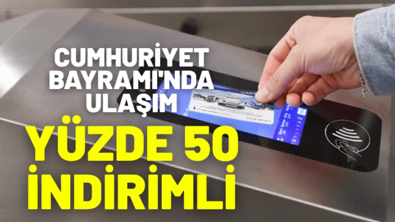 İzmir Büyükşehir Belediyesi, 29 Ekim Cumhuriyet Bayramı'nda kent içi toplu ulaşımda düzenlemelere gitti. İzmir Büyükşehir Belediyesi'ne bağlı toplu ulaşım kurum ve kuruluşlarında ulaşım yüzde 50 indirimli olacak. Büyükşehir-TCDD ortaklığıyla işletilen İZBAN ise Cumhurbaşkanlığı Kararnamesi doğrultusunda gün boyunca ücretsiz hizmet verecek.