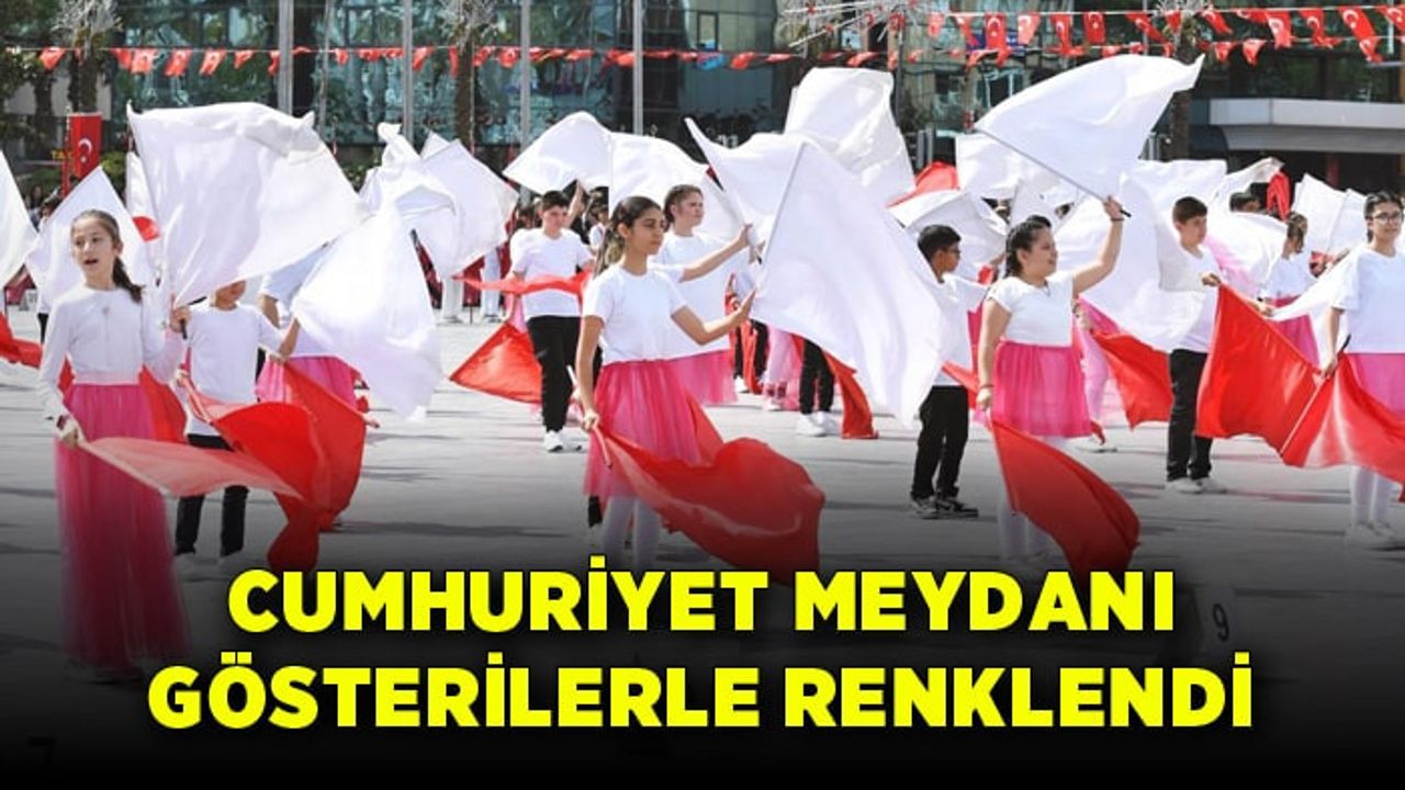 Cumhuriyet Meydanı'nda düzenlenen tören, renkli görüntülere sahne oldu. Törende İzmirlilerle bayramlaşan Başkan Dr. Cemil Tugay, çocuklar ve aileleriyle hatıra fotoğrafı çektirdi. Cumhuriyet Meydanı'ndaki törende ilk ve orta öğretim öğrencilerinin renkli gösterileri büyük ilgi gördü. Miniklerin günün anlam ve önemine ilişkin şiirleri, dans gösterileri ve halk dansları izleyenleri büyüledi.