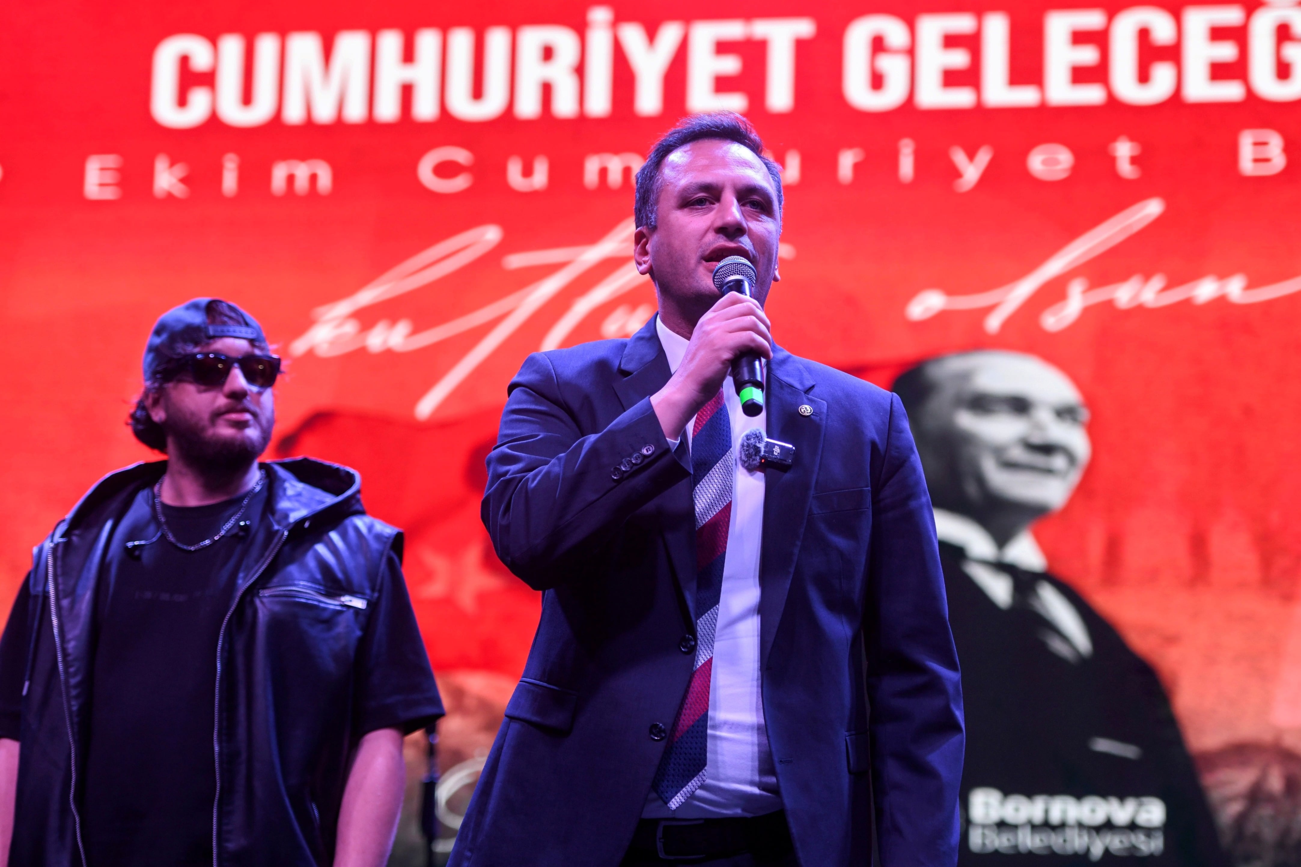 Binlerce Bornovalının katıldığı kutlamalarda sahne alan rap şarkıcısı Anıl Piyancı, büyük çoğunluğu gençlerden oluşan coşkulu kalabalığa unutulmaz anlar yaşattı. Etkinlikte konuşma yapan Bornova Belediye Başkanı Ömer Eşki, Cumhuriyet'in özgürlük ve eşitlik temellerine vurgu yaparak, "Cumhuriyet, özgür kadınlar, özgür gençler, özgür müzik demek. Cumhuriyet'e ne kadar sahip çıksak azdır" dedi.