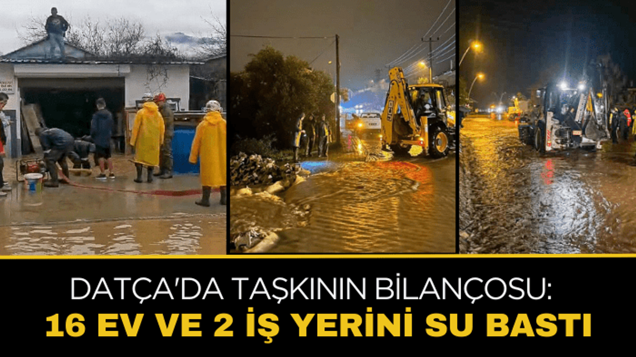 Metrekareye 75 kilogram yağmur düşen ilçede taşkının bilançosu da ortaya çıktı. 16 ev ve 2 iş yerini su bastı. Datça Kaymakamlığı’ndan su baskınlarıyla ilgili yapılan açıklamada, "3 Ocak 2025 günü başlayan ve 4 Ocak 2025 günü devam eden yağışlar sonucu ilçemizde metrekareye 75 kilogram yağış düşmüştür. 112 Acil Çağrı Merkezimize gelen ihbarlar neticesinde 16 ev ve 2 iş yerinde su baskını meydana gelmiştir. Devletimiz tüm kurumlarıyla vatandaşlarımızın yanındadır" denildi.