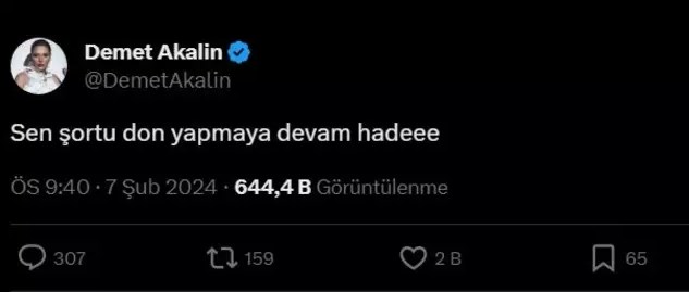 Survivor izleyicisi olan Demet Akalın'ın arası Nagihan Karadere iyi iyiydi. Şarkıcı, Nagihan ve Aleyna kavgasına X'te tepki gösterirken, Aleyna hakkında dumura uğratan bir yorumda bulundu.