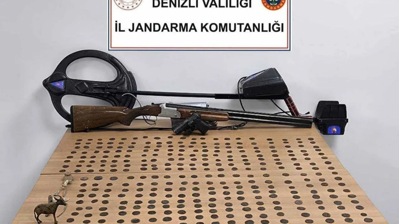 Denizli İl Jandarma Komutanlığı Kaçakçılık ve Organize Suçlarla Mücadele Şubesi ekipleri, istihbarat çalışmasıyla Kale ilçesinde 1 kişinin elinde bulunan tarihi eserleri satmaya çalıştığını belirledi. Bu kapsamda, dün düzenlenen operasyonla şüpheli gözaltına alındı. Şüphelinin evindeki aramada, Bizans dönemine ait 379 sikke, yüzük, 2 kolye, hayvan heykeli, 9 tarihi obje, ruhsatsız av tüfeği ve tabanca ele geçirildi. Tarihi eserler, Denizli Müze Müdürlüğü'ne teslim edildi.