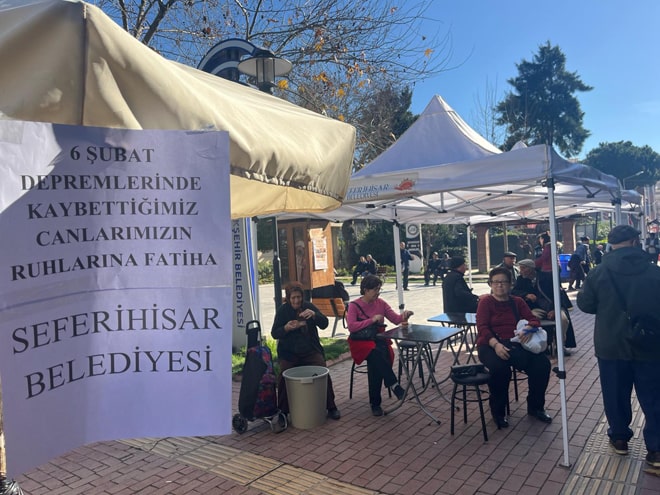 Anma töreninin ardından Seferihisar Cumhuriyet Meydanı ve Ürkmez Hizmet Binası önünde, depremde hayatını kaybedenlerin anısına vatandaşa lokma dağıtıldı.