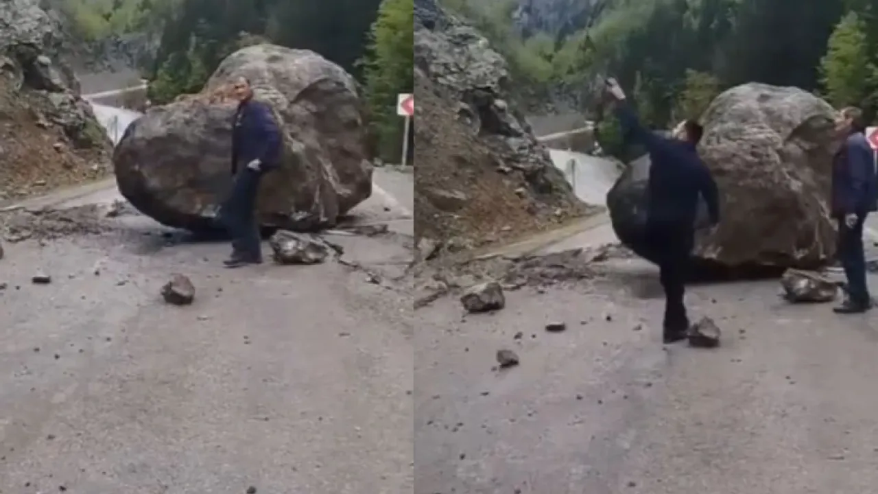 Kürtün ilçesine bağlı Erikbeli Yaylası Kale Mahallesi mevkisinde sabah saatlerinde meydana gelen heyelanla dağ yamacından kopan toprak ve büyük kaya kütlesi karayoluna düştü. Yaylaya gitmek için otomobille yola çıkan arkadaş grubu, dev kaya kütlesinin altında kalmaktan son anda kurtuldu. Grupta yer alanlar, kaya düşmesi sonrası yolda yaşadıkları korku dolu anları cep telefonu kamerasıyla kayda alıp, görüntüleri sosyal medya hesaplarından paylaştı.