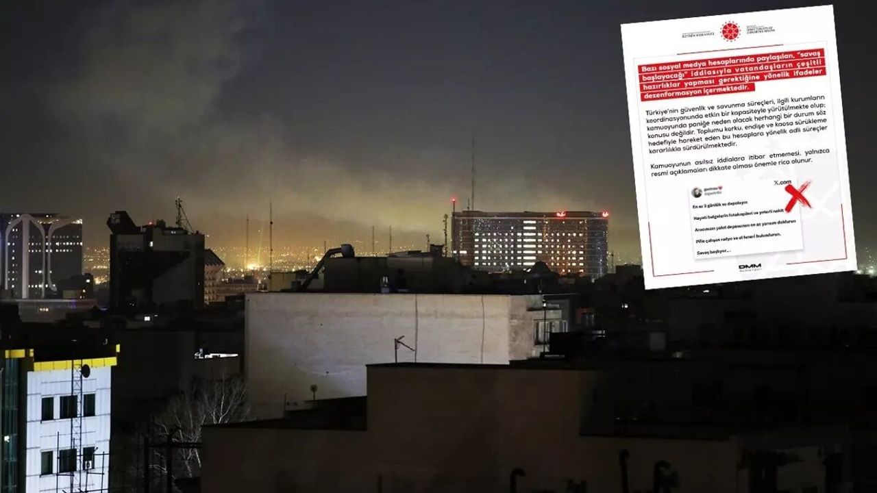 DMM’nin sanal medya hesabından yapılan paylaşımda, “Bazı sosyal medya hesaplarında paylaşılan, 'savaş başlayacağı' iddiasıyla vatandaşların çeşitli hazırlıklar yapması gerektiğine yönelik ifadeler dezenformasyon içermektedir. Türkiye’nin güvenlik ve savunma süreçleri, ilgili kurumların koordinasyonunda etkin bir kapasiteyle yürütülmekte olup; kamuoyunda paniğe neden olacak herhangi bir durum söz konusu değildir. Toplumu korku, endişe ve kaosa sürükleme hedefiyle hareket eden bu hesaplara yönelik adli süreçler kararlılıkla sürdürülmektedir. Kamuoyunun asılsız iddialara itibar etmemesi, yalnızca resmi açıklamaları dikkate alması önemle rica olunur” ifadeleri kullanıldı.