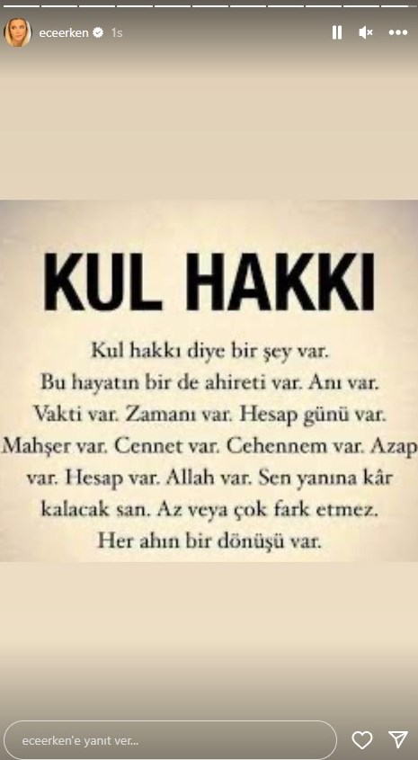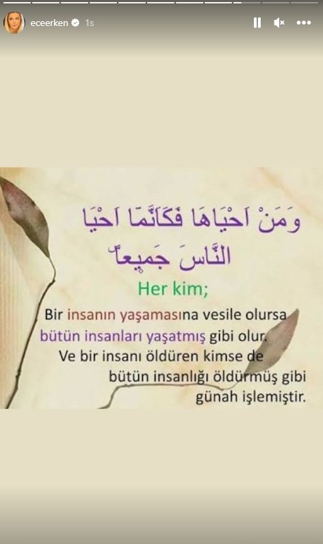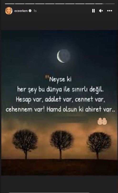 Kararın ardından Ece Erken dikkat çeken paylaşımlar yaptı. Erken, paylaşımlarında şu ifadelere yer verdi: "Neyse ki her şey bu dünya ile sınırlı değil. Hesap var, adalet var, cennet var, cehennem var! Hamd olsun ki ahiret var.