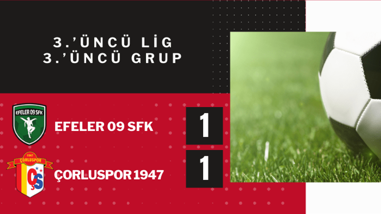3’üncü Lig 3’üncü Grup’ta tehlikeli bölgeden uzaklaşma mücadelesi veren Efeler 09 SFK, evinde çıktığı 21’inci hafta erteleme maçında Play-Off hattındaki Çorluspor 1947 ile 1-1 berabere kaldı.