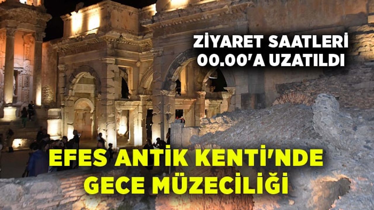 Türkiye'nin eşsiz tarihi mekanlarını ve zengin kültürel mirasını, gün batımı sonrası bambaşka bir atmosferde ziyaretçilerle buluşturmayı amaçlayan gece müzeciliği İzmir Selçuk Efes Ören Yeri'nde hayata geçirildi. Her yıl yüzbinlerce ziyaretçiye kapılarını açan Efes Ören Yeri'nde, gece müzeciliği lansman toplantısı gerçekleştirildi. Toplantıya, İzmir Valisi Süleyman Elban, Ege Ordusu ve Garnizon Komutanı Orgeneral Kemal Yeni, Kültür ve Turizm Bakanlığı protokolü, devlet görevlileri ve turizm sektöründeki paydaşlar katıldı. Kültür ve Turizm Bakanlığı tarafından gerçekleştirilen proje kapsamında 2015 yılında UNESCO tarafından Dünya Mirası Listesi'ne kabul edilen Efes Antik Kenti, geceleri de ziyaretçilere açıldı. Yenilenen ışıklandırma çalışmalarıyla birlikte ziyaretçiler, 2 bin 300 yıllık Efes Antik Kenti'ni gün batımından sonra da ziyaret etme imkanı buluyor.