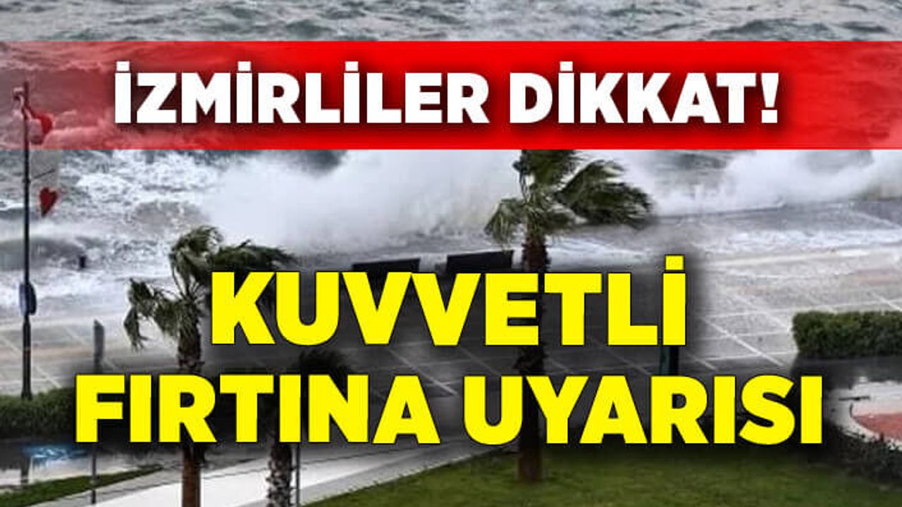 Meteoroloji 2'nci Bölge Müdürlüğü Tahmin ve Erken Uyarı Merkezi, Ege Denizi için fırtına uyarısı yaptı. Bu akşam saatlerinde etkili olacağı tahmin edilen fırtınaya ilişkin "Rüzgarın, bugün akşam saatlerinden sonra Kuzey Ege'nin kuzeyinde zamanla Kuzey Ege genelinde, yarın akşam saatlerinde Güney Ege'nin kuzeyinde kuzey ve kuzeydoğudan 6 ila 8 kuvvetinde (50-75 km/saat) fırtına şeklinde eseceği tahmin edilmektedir. Fırtınanın, cumartesi günü akşam saatlerinden sonra etkisini kaybetmesi beklenmektedir" denildi.