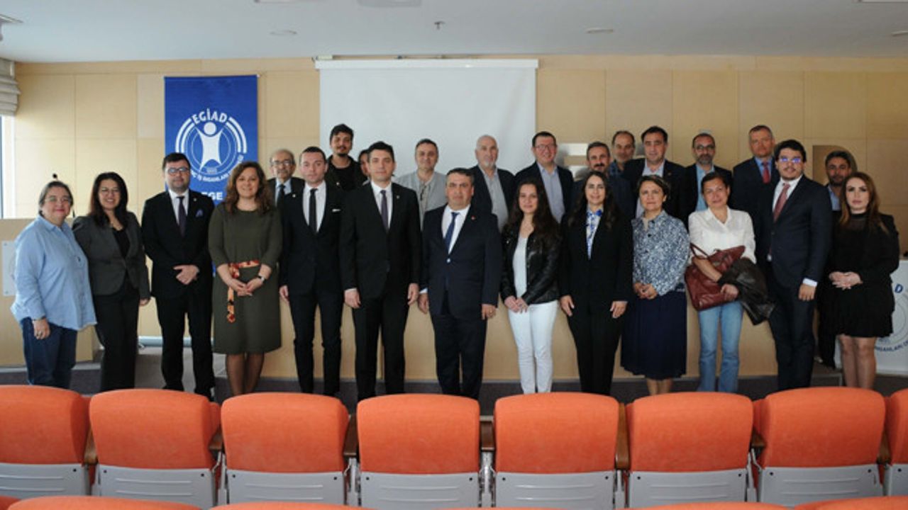 asın ve iş dünyası temsilcilerinin ortak çalışmalar yürütmek için fikir alışverişinde bulunduğu, toplantının açılış konuşmasını gerçekleştiren EGİAD Başkanı Alp Avni Yelkenbiçer, öncelikle olarak kurum projelerinden bahsetti.