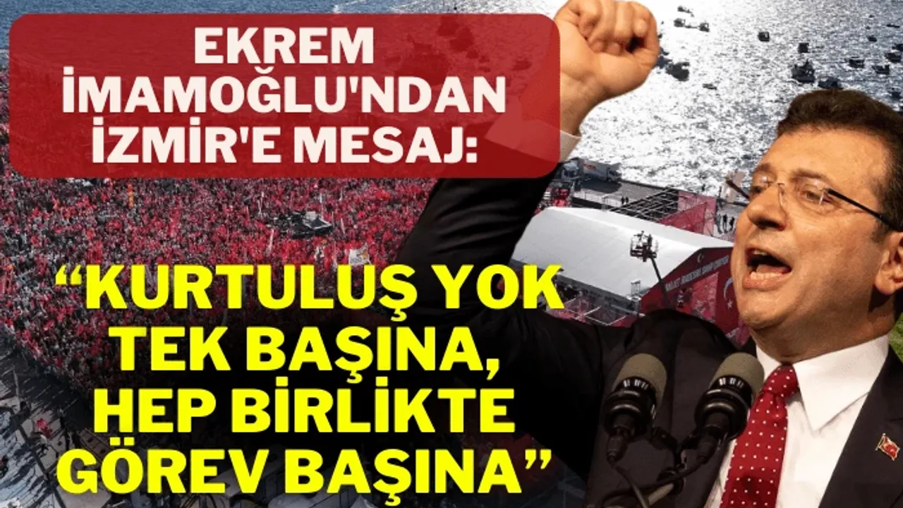 Herkesin özgür, adil ve müreffeh bir hayat süreceği günlere hep birlikte mücadele ederek kavuşacağız. Güçlü, demokratik devlet anlayışıyla ekonomimizi ayağa kaldıracağız. İzmir’i ve Ege’yi yeniden üretimin, tasarımın, ihracatın, tarımın ve teknolojinin merkezi yapacağız. Herkese iş, her haneye huzur, her çocuğa gelecek sunacağız. Bu sadece bir seçim mücadelesi değil, bu yeni bir kurtuluş mücadelesidir. Biz, milletin iktidarını kurmaya geliyoruz. Biz, milletiyle barışık, halkına hesap veren bir yönetimi inşa etmeye geliyoruz. Biz, yeniden eşitlik, yeniden adalet, yeniden kardeşlik için geliyoruz. Gençliğin vicdanıyla, gençliğin enerjisiyle, gençliğin cesaretiyle geliyoruz. Gençler, düşledikleri hayatı burada, kendi vatanlarında, kendi elleriyle kursunlar diye geliyoruz. Biz kazanacağız. 86 milyon vicdanlı yurtsever kazanacak. Hak yemekten korkan, ama asla hakkını yedirmeyenler kazanacak. Adalet, haysiyet ve cesaret kazanacak. Haydi İzmir; kurtuluş yok tek başına, hep birlikte görev başına… Ekrem İmamoğlu. Silivri Cezaevi.”