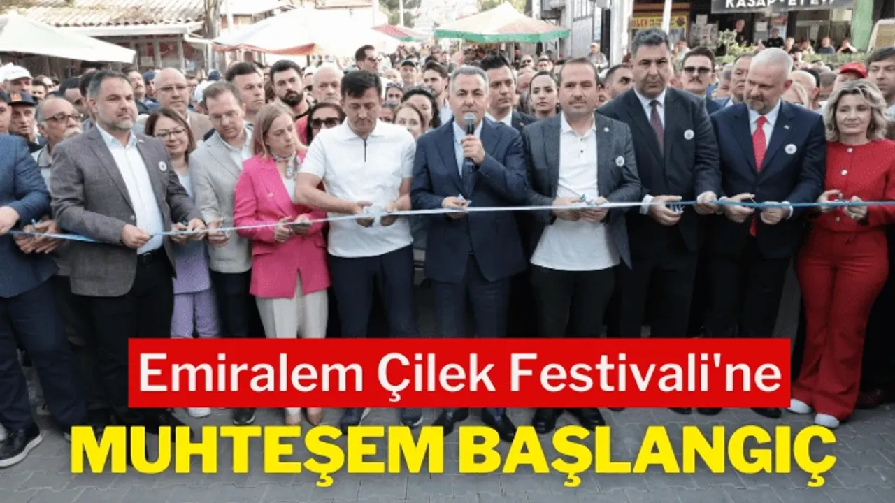Türkiye'nin en lezzetli festivalleri arasında yer alan Emiralem Çilek Festivali, kapılarını 15. kez açtı. Yaklaşık 7 bin tonluk rekoltesiyle İzmir'in çilek üretiminin yüzde 55'ini karşılayan Emiralem'de yüz binlerce vatandaşın katılımıyla ilk gün coşkusu yaşandı. Üretici ve tüketiciyi bir araya getiren festival, 7'den 77'ye her yaştan vatandaşa hitap eden etkinlikleri, renkli stantları, gün boyu müziğiyle büyük ilgi çekti.