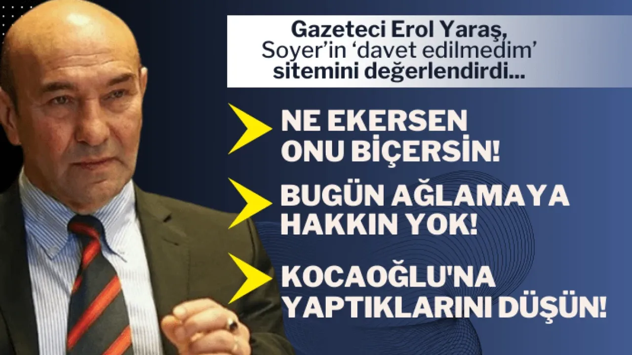 İzmir'de dün Çiğli İleri Biyolojik Atıksu Arıtma Tesisi'nin açılışı gerçekleştirildi. Açılışın olduğu gün eski belediye başkanı Tunç Soyer'in davet edilmediği için sitemkar paylaşımlarını değerlendiren Gazeteci Erol Yaraş, “Söyleyeceğim bir tek atasözü var; “Ne ekersen onu biçersin” dedi.