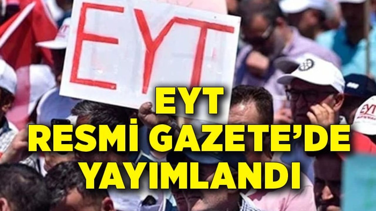 Emeklilikte Yaşa Takılanlara (EYT) ilişkin Kanun, Resmi Gazete'de yayımlanarak yürürlüğe girdi.