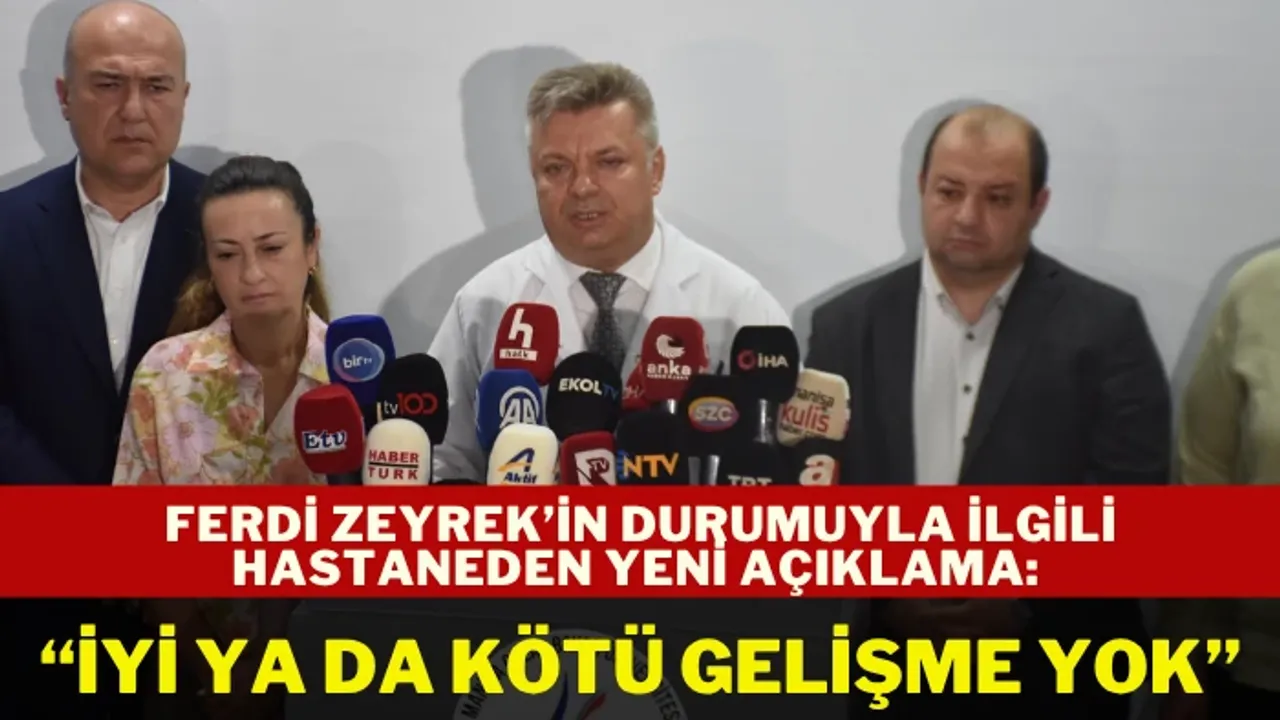 Manisa'da oturduğu site havuzunun makine dairesindeki arızayı gidermeye çalışırken elektrik akımına kapılan, duran kalbi uzun süre yapılan kalp masajıyla yeniden çalıştırılan Manisa Büyükşehir Belediye Başkanı Ferdi Zeyrek'in, Manisa Celal Bayar Üniversitesi Hafsa Sultan Hastanesi yoğun bakım ünitesinde tedavisi sürüyor. Zeyrek'in sağlık durumu ile ilgili bilgi veren Başhekim Prof. Dr. İsmet Topçu, "Bugün Ferdi Zeyrek'in hastaneye yatışının 60’incı saati ve 3'üncü güne girdik tedavi sürecinde. Yaklaşık 70 dakika yapılan canlandırmaya alınan yanıt ile birlikte yoğun bakım süreci devam ediyor. Bugün itibarıyla dünden farklı olarak iyi yönde bir gelişme yok ama negatif bir gelişme de yok. Mevcut hayatta kalma mücadelesi devam ediyor. Teknik ekipman anlamında tüm ihtiyaçlar karşılanıyor. Hem kalbinin hem akciğerinin oksijenlenmesinin sağlanması, böbreklerin diyaliz fonksiyonlarının sürdürülmesi işlemleri yoğun bakımda devam ediyor. Uzmanların değerlendirmesiyle süreç devam ediyor. Dünden farklı bir gelişme yok. Bu süreçte başta Rektörümüz, Valimiz, Bakanımız ve Bakan Yardımcılarımızla istişare halindeyiz. Onların destekleri çalışan ekiplerin motivasyonu anlamında değerli" dedi.