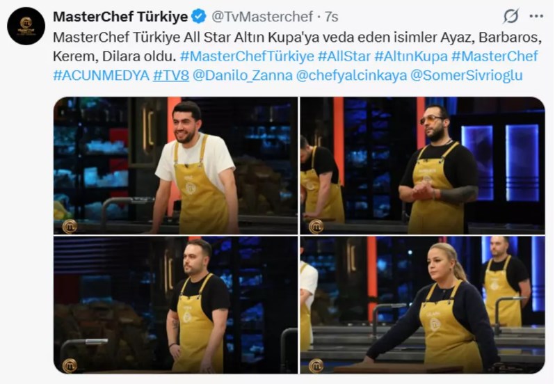 MasterChef Türkiye All Star Altın Kupa'ya veda eden isimler Ayaz, Barbaros, Kerem, Dilara oldu.