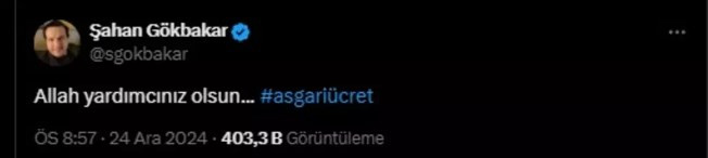 Asgari ücrete bu kapsamda yüzde 30 zam yapılmış oldu. Yeni asgari ücret için kısa sürede sosyal medyada yorum yağdı. Asgari ücret eleştirilerine bir yorum da ünlü oyuncu Şahan Gökbakar'dan geldi.
