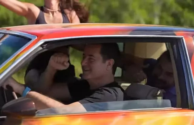 Müzik eşliğinde klasik aracı kullanan Ilıcalı, Survivor'da oyun alanına giriş yaptı.