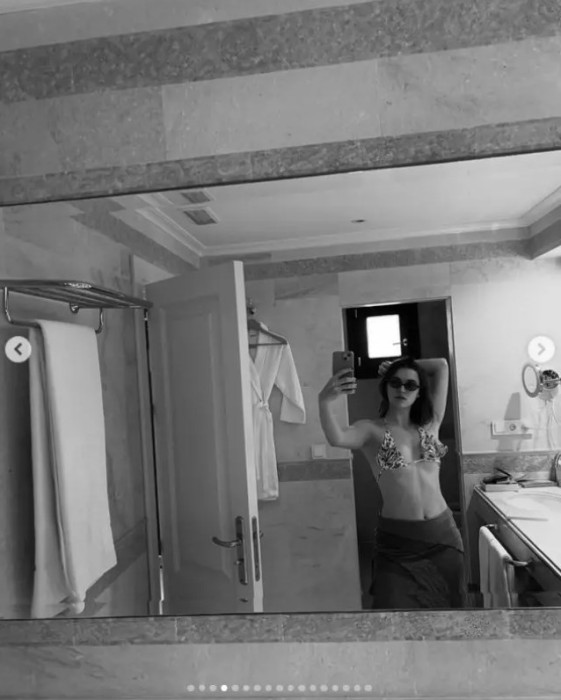 Oyunculuk hayatının yanı sıra özel hayatıyla da gündemden düşmeyen Afra Saraçoğlu Instagram'da yaptığı çoklu paylaşımına bikinili ayna selfiesini de ekledi.