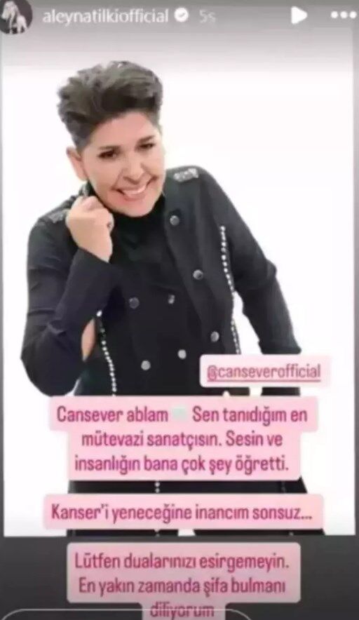 Aleyna Tilki, sosyal medya hesabından yaptığı paylaşımla Cansever'e olan sevgisini ve desteğini dile getirdi. Aleyna Tilki, paylaşımında "Cansever'in kanseri yeneceğine inancım sonsuz!" diyerek şunları yazdı:
