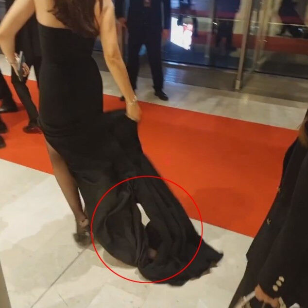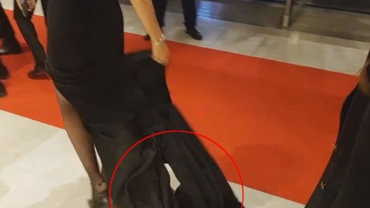 Elbisesiyle kırmızı halıda boy gösteren oyuncu, talihsiz bir kaza yaşadı.