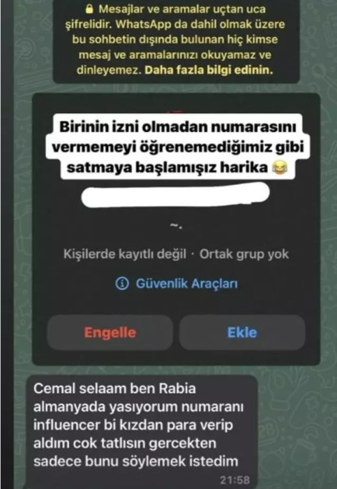 Sosyal medya hesabından bir ekran görüntüsü paylaşan Cemal Can Canseven, telefon numarasının bir influencer tarafından hayranına satıldığını öğrenince şaştı kaldı.