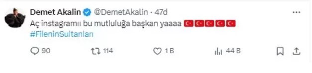 Demet Akalın, Filenin Sultanları'nın tarihi zaferinin ardından 'Aç Instagram'ı bu mutluluğa başkan ya', 'Instagram açık olmalı ya, buradan bir sürü güzel dilekler göndermeliyiz, bizleri yanlarında hissetmeliler' paylaşımlarını yaptı.