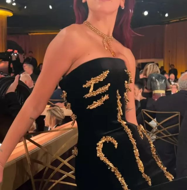 Barbie filmi için yaptığı şarkıyla ödüle aday gösterilen Dua Lipa, törenden eli boş dönerken kıyafeti nedeniyle yaşadığı oturma problemiyle de gündem oldu.