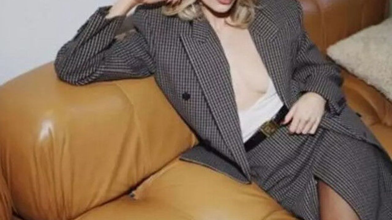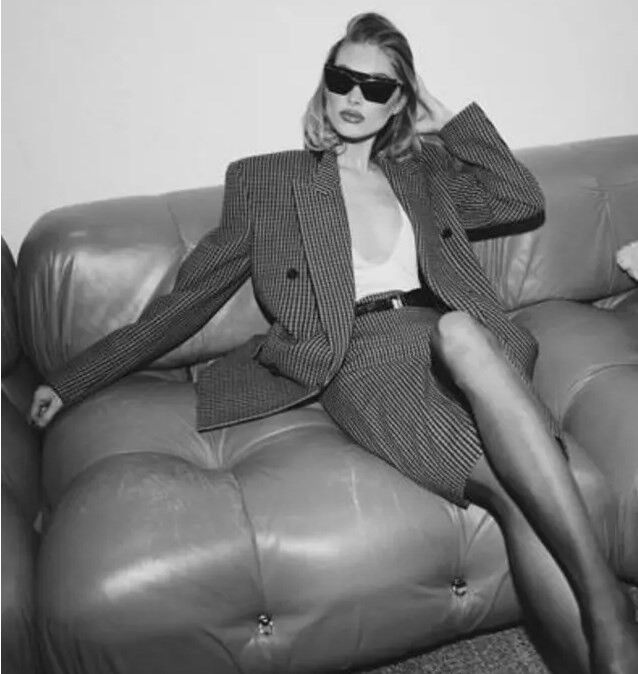 Etek ceket kombini yapan Elsa Hosk ceketinin içine beyaz derin dekolteli bir bluz giymeyi tercih etti.