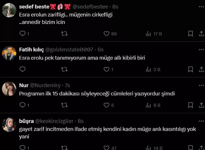Esra Erol'un konuşması sonrasında "Müge Anlı, Çağla Şikel’e laf sokmakla meşgulken Esra Erol güzel bir konuşma yaptı" yorumları yağdı.