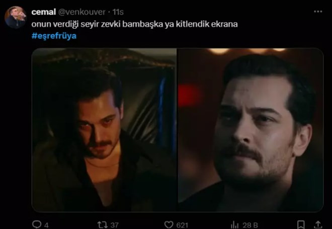 Çağatay Ulusoy’un Eşref Tek karakterini, Demet Özdemir’in ise genç müzisyen Nisan’ı canlandırdığı Eşref Rüya, hem oyuncu kadrosu hem de sürükleyici konusu ile izleyicilerin ilgisini çekiyor. Eşref Rüya birinci bölüm sosyal medyada da büyük ilgi gördü.