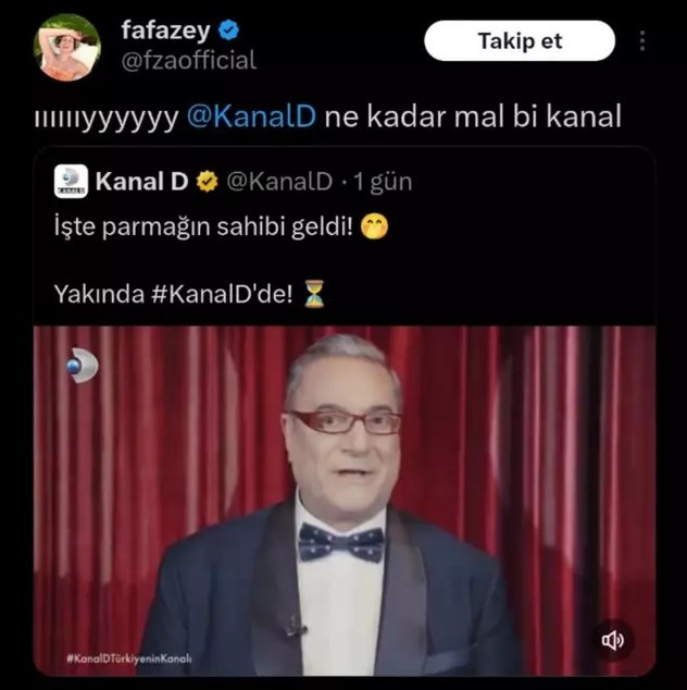 Oyuncu Farah Zeynep Abdullah, Mehmet Ali Erbil'in yeni programının yayınlanacağı Kanal D'ye "Iıııııyyyyyy ne kadar mal bir kanal" diyerek tepki gösterdi.