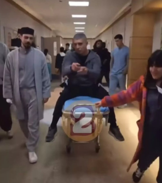 Yayınlanan görüntülerde Özcan Deniz'in sedye üzerinde gittiği ve Mert Yazıcıoğlu'nun ona eşlik ettiği görüldü.