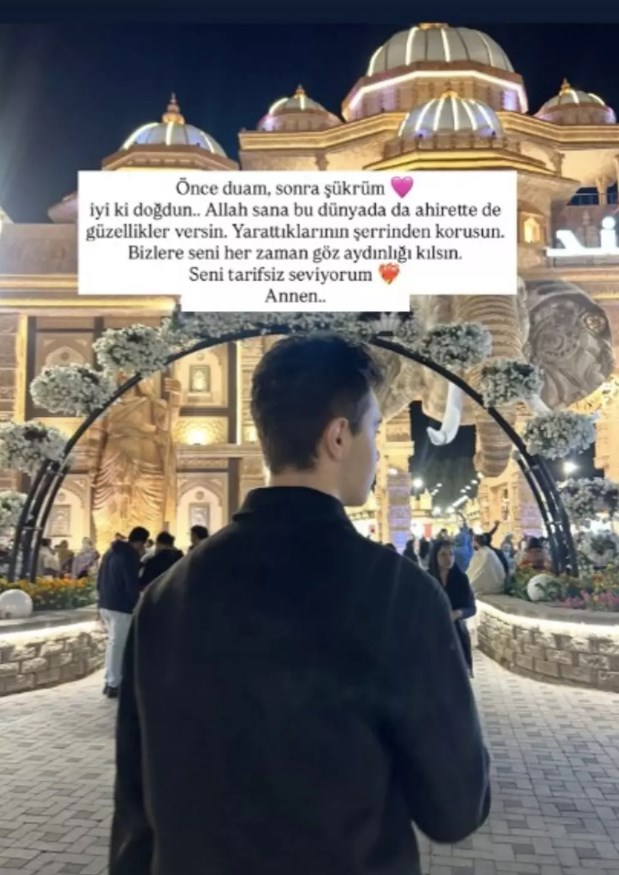 "Önce duam, sonra şükrüm. İyi ki doğdun… Allah sana bu dünyada da ahirette de güzellikler versin. Yarattıklarının şerrinden korusun. Bizlere seni her zaman göz aydınlığı kılsın. Seni tarifsiz seviyorum annen."