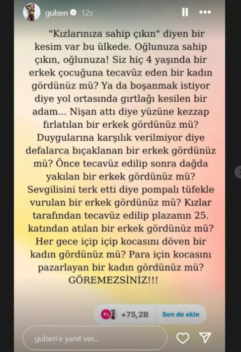 Gülşen'in paylaşımı sosyal medyada pek çok kadın tarafından paylaşıldı! "'Kızlarınıza sahip çıkın' diyen bir kesim var ülkede..."