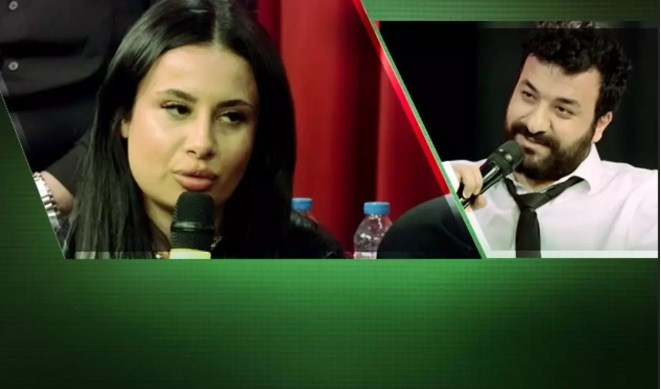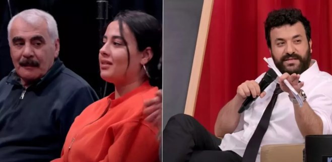 Kadın konuk ise 'Baba bir bıyığını kaldırır mısın?' diyerek izlemeye gelenler arasında oturan babasına seslendi. Hasan Can aldığı bu yanıt karşısında kahkahaya boğuldu ve 'Bunu lütfen yapma. Tamam kabul ediyorum. Dudakların silikon değil.' yanıtını verdi.