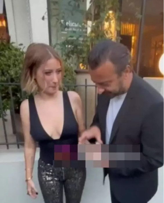 Kombinini yüksek topuklu ayakkabıları ile tamamlayan Hazal Kaya yürümekte bile zorlandı. Kaya'ya eşi Ali Atay elini bırakmayarak yardımcı oldu.
