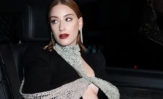 Hazal Kaya düğüne parlak kumaş bol paça bir pantolon ve mayo tarzı siyah derin göğüs dekolteli bir büstiyer kombini ile katıldı. Ünlü ismin cesur tarzı pek beğenilmedi.