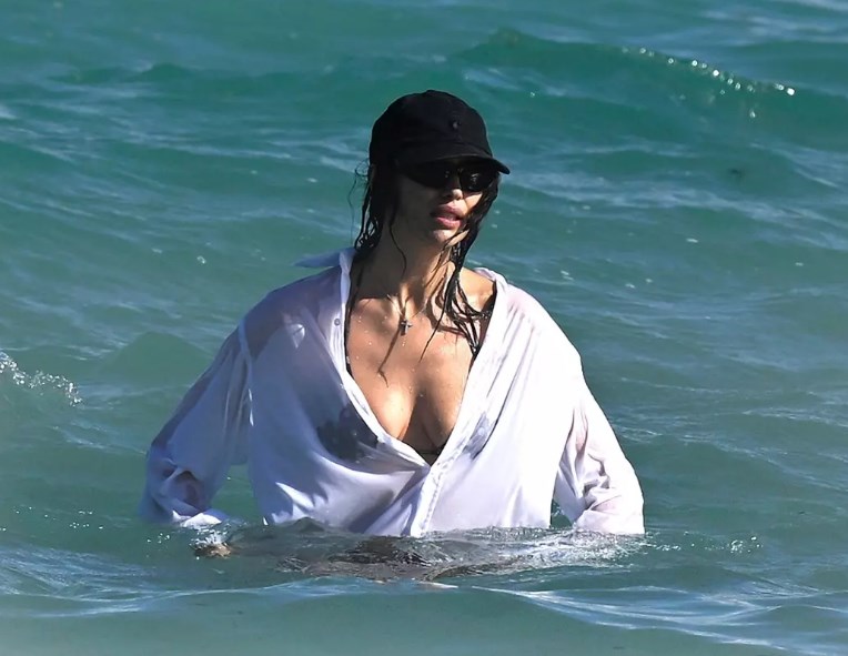 Siyah, derin dekolteli bir bikini tercih eden Shayk, beyaz puantiyeli bağcıklı altıyla plaj stilini tamamladı. Doğal dalgalar halinde omuzlarına dökülen saçları ve siyah şapkasıyla sade ama çarpıcı bir görünüm sergileyen model, kombinini zarif bir kolye ve güneş gözlüğüyle tamamladı. Zaman zaman beyaz düğmeli bir gömlekle bikinisini kombinleyen Shayk, okyanusa atlayarak serin suların tadını çıkardı.