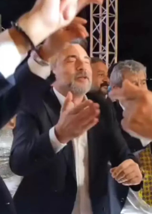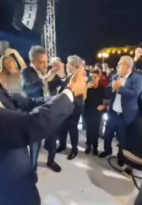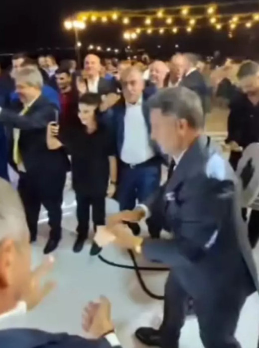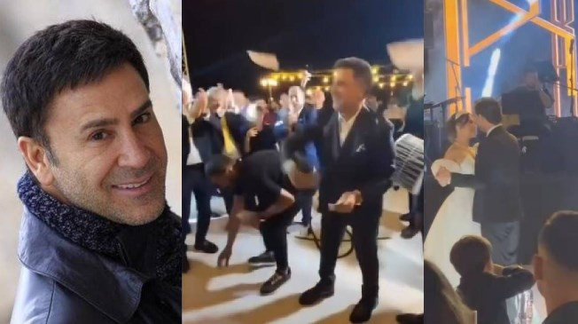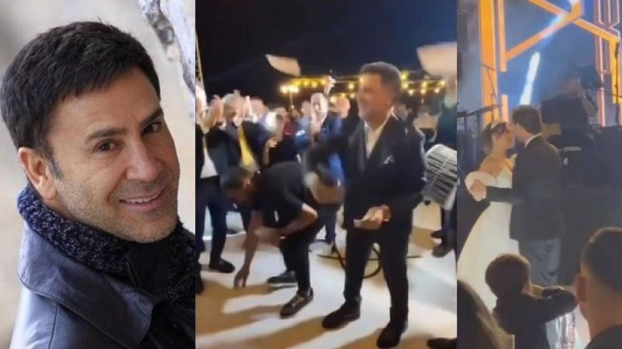 Düğünde türkücü arkadaşı Oktay Kaynarca ve diğer iş insanı dostlarıyla karşılıklı göbek attı. O anlar sosyal medyaya da yansıdı.