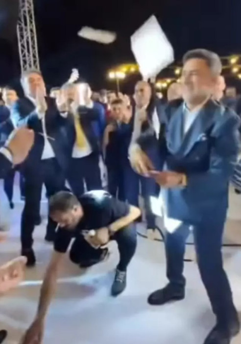 Oktay Kaynarca ve İzzet Yıldızhan oynarken tomar tomar para saçılması da gözlerden kaçmadı. Türkücü de bir ara paraları etrafa saçarak oynamaya devam etti.