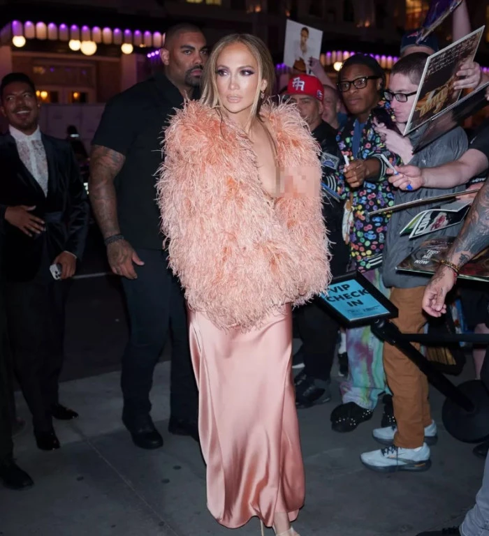 Ancak Lopez'in ilk tercihi bazı talihsiz anlara da sebep oldu. Sütyensiz seçimiyle boy gösteren JLO'nun elbisesi kayınca göğsü açıldı. Ancak Lopez, bu durumun kontrolünü kaybetmeyerek özgüvenini korudu.