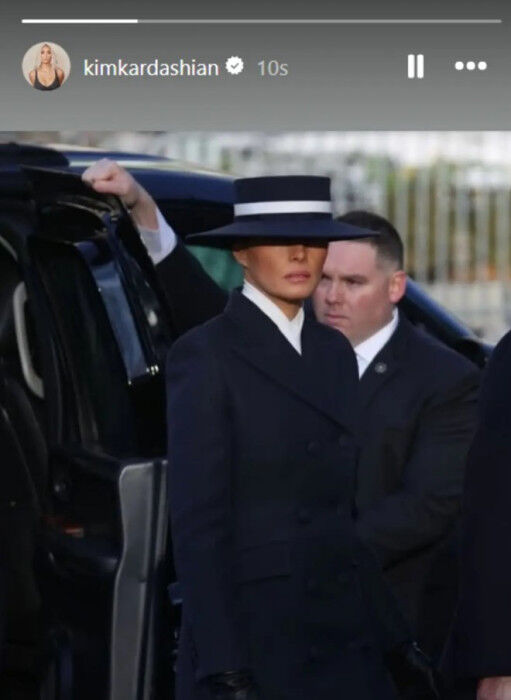 44 yaşındaki Kardashian, şık bir siyah takım elbise giyen yeni First Lady Melania’yı Instagram hikayesinde paylaştı. Bu paylaşım, sosyal medyada büyük bir tepki dalgası yarattı.