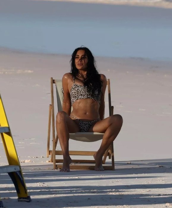 44 yaşındaki Kim, leopar desenli iki parçalı mayosuyla kıvrımlarını sergiledi. Kalçalarıyla bir dönem sık sık adından söz ettiren Kim Kardashian yine gündeme gelmeye başardı.