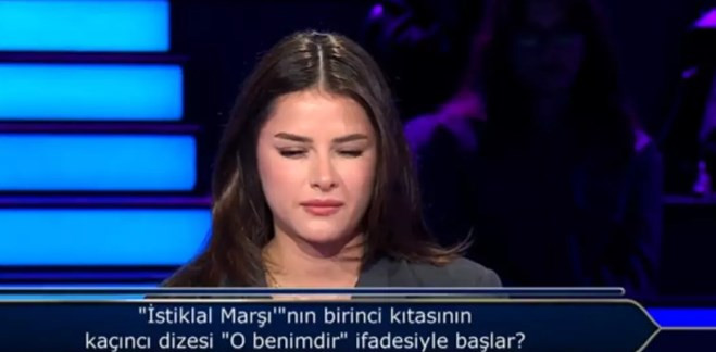 Kim Milyoner Olmak İster'in son bölümünde İstiklal Marşı'nın dizilerini karıştıran yarışmacı programa damga vurdu. Heyecanına yenik düşen yarışmacı doğru cevabı duyunca hayatının şokunu yaşadı.
