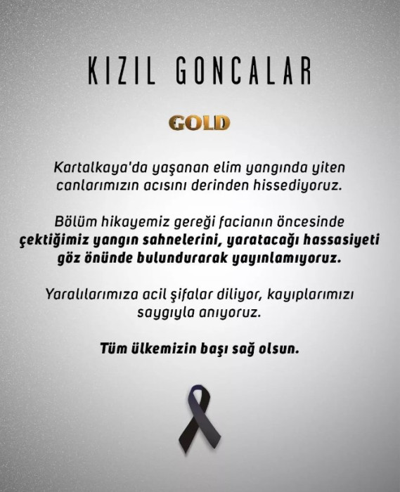 Bolu Kartalkaya’daki yangın öncesi çekilen bu sahneleri kanal ve yapım şirketinin toplumsal hassasiyeti göz önüne alarak diziden çıkarmaya karar verdiği öğrenildi. Dizinin resmi hesaplarından "Kartalkaya'da yaşanan elim yangında yiten canlarımızın acısını derinden hissediyoruz. Bölüm hikayemiz gereği facianın öncesinde çektiğimiz yangın sahnelerini, yaratacağı hassasiyeti göz önünde bulundurarak yayınlamıyoruz. Yaralılarımıza acil şifalar diliyor, kayıplarımızı saygıyla anıyoruz.